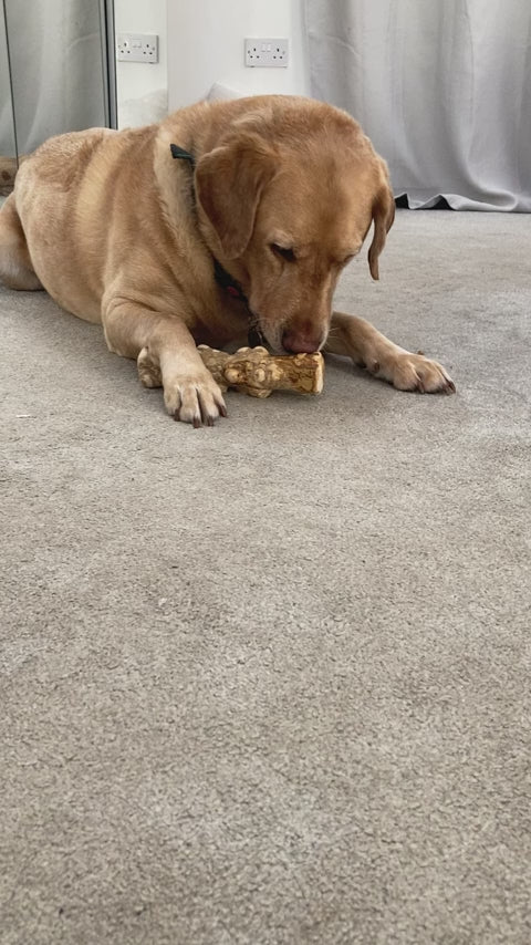 Watch real dogs across the UK enjoy Woodbone's natural chew sticks made from coffee and olive wood.